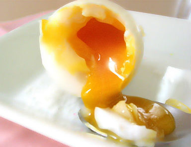ใส่ไข่ในน้ำเย็นแล้วนำไปตั้งไฟจนเดือด จับเวลาตั้งแต่เริ่มต้นนานประมาณ 10 นาที แล้วตักขึ้นแช่ในน้ำเย็น แค่นี้ก็จะได้ไข่ขาวสุก และไข่แดงเป็นยางมะตูมแล้ว