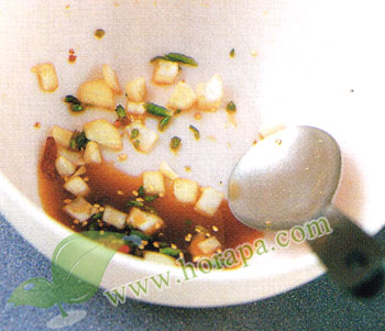 พริกขี้หนูตำ น้ำปลา มะนาวและน้ำตาล
