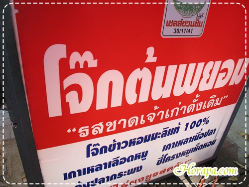 เมื่อครั้งไปเที่ยวเชียงใหม่ ใครๆก็บอกว่าเช้าๆให้ไปทานโจ๊กต้นพยอมให้ได้ เราก็เลยจัดการเปิด GPS เพราะขับไปเองไม่ถูกทางแน่ๆ ไปถึงมีสองร้านติดกันก็เลือกร้านที่สองค่ะ เลือกเพราะดูคนเยอะดีหลังจากสั่งอาหารแล้ว เค้าจะเอาปาท่องโก๋ตัวใหญ่นี่มาเสิร์ฟพร้อมสังขยา