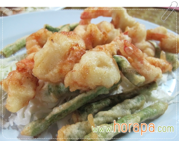 กุ้งชุบแป้งทอดมาพร้อมผักชุบทอดค่ะ