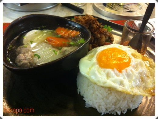 ร้านนี้เหมาะกับสาวๆมากเพราะทานเป็นเซ็ทที่ไม่มากจนเกินไป เซ็ทนี้มีแกงจืดและข้าวไข่ดาวและกุ้งทอดกระเทียมค่ะ