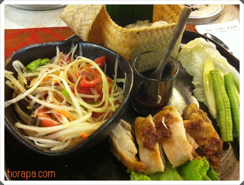 ส่วนนกเลือกทานเมนูข้าวเหนียวไก่ย่าง ส้มตำ