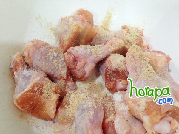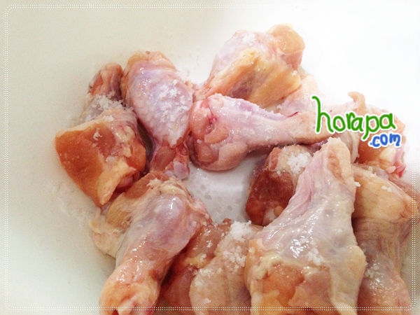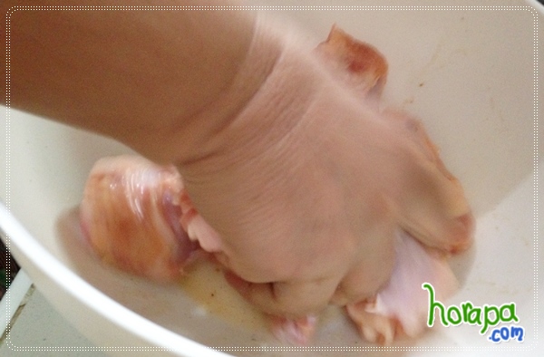 ไก่ที่เตรียมไว้ ล้างและสะเด็ดน้ำค่ะ