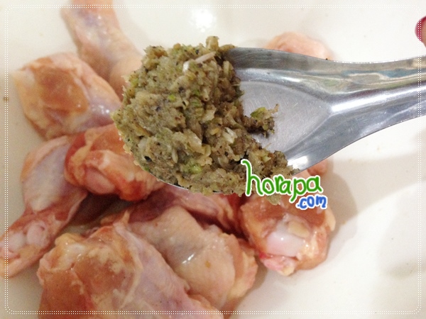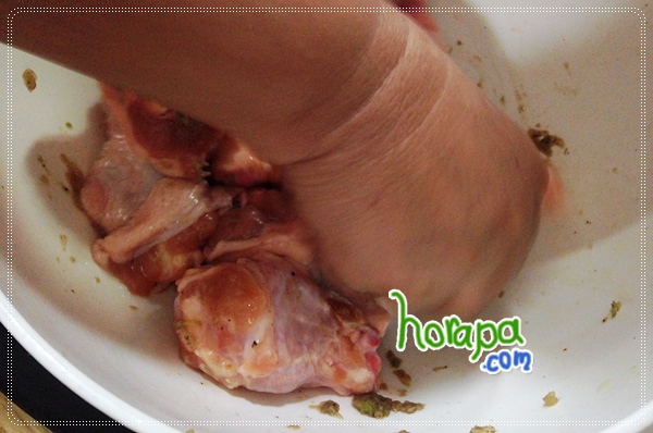 คลุกค่ะ เอาให้มันกระจายๆให้โดนเนื้อไก่เยอะๆเลยค่ะ