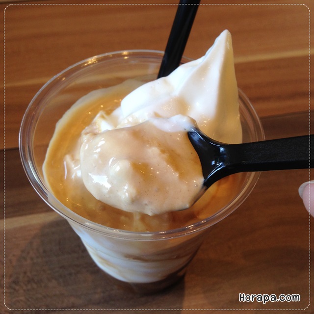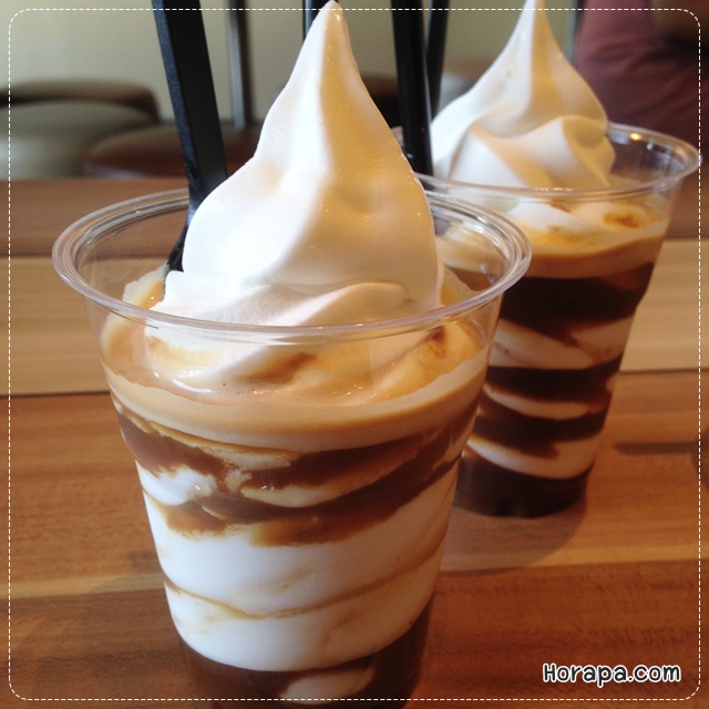 อีกเมนูแนะนำนะคะ คือ Espresso Affogato ที่เราลองไม่มีท้อปปิ้งนะคะ ท้อปปิ้งของเค้าจะมีช็อคโกแลตกับคาราเมลค่ะ เค้าใช้กาแฟเอสเปรสโซแบบช๊อตเลยค่ะ กาแฟสดนี่ล่ะ แล้วก็ใส่ไอศกรีมนม แล้วจะบอกว่าไอศกรีมนมของเค้าเนี่ยก็นำเข้านะคะ ก็จะนุ่มแล้วไม่ได้ละลายเยิ้มง่ายๆด้วย ดูดกาแฟไปอึกแรก.....ขมปี๋เลยอ่ะ แต่พอสักพักที่ไอศกรีมละลายไปผสมเริ่มอร่อยละ ถ้าคนสักนิดจะอร่อยมากๆ แต่สำหรับคนชอบกาแฟขมๆก็จัดไปได้ตามสบายค่ะ