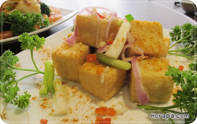 เต้าหู้ทอดผัดพริกเกลือ ตอนแรกไม่อยากทานเลยค่ะ เพราะส่วนตัวไม่ชอบเต้าหู้แบบนี้ แต่เพราะหน้าตาเค้าดูดีมาก โรยด้วยพริกปาปริก้า ดูแล้วท่าทางจะแซบ เลยลองคำนึง แล้วก็มีคำที่สอง คำที่สาม รสชาติที่ลงตัวของพริกกับเกลือ เต้าหู้ทอดที่นิ่มกำลังดี และความหอม ทำให้ทานง่าย เป็นเมนูที่เบาๆแต่อร่อยมากๆเลยค่ะ เห็นมีพริกนี่ไม่เผ็ดนะคะ
