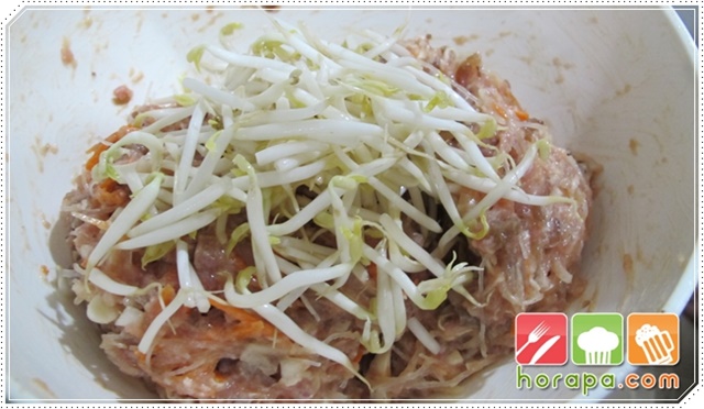 สำหรับถั่วงอก ให้ค่อยๆเติมแล้วคลุก ถ้าใส่มากเกินไปไส้จะแข็งค่ะ
