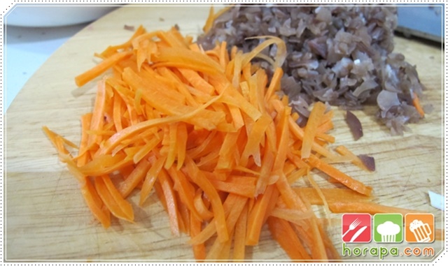 แครอทให้หั่นชิ้นเป็นชิ้นเล็กๆฝอยๆ