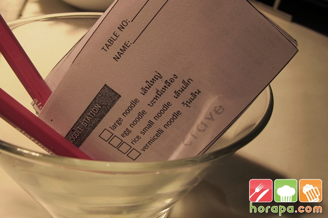 เวลาสั่ง ให้เขียนหมายเลขโต๊ะ และให้เลือกว่าจะเอาเส้นอะไร