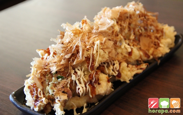 Okonomiyaki terriyaki  หนวดปลาหมึกชุปแป้งทอดโรยด้วยผงปลาสไตล์ญี่ปุ่น