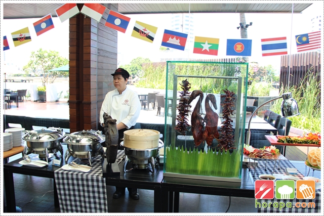 เนื่องจากตอนนี้ทางโรงแรมมีโปรโมชั่น อร่อยลุ้น ?ซันเดย์บรั๊นซ์ มา 4 จ่าย 3 ลุ้นเที่ยวโฮจิมินห์ยกแก๊ง? กับโรงแรมรอยัล ออคิด เชอราตัน และไทยแอร์เอเชีย อยู่ จึงได้มีโซนอาหาร AEC จัดไว้บริการด้วยค่ะ มีอาหารหลากหลายชนิด อาจจะเปลี่ยนไปแต่ละสัปดาห์นะคะ