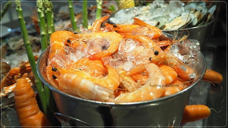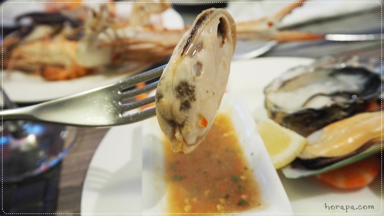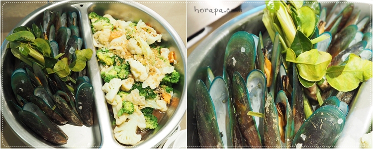 แต่ถ้าไปยืนดูคือมีซีฟู้ดไว้ให้ตักหลายชนิดเหมือนกันนะคะ ทั้งหอยนางรม หอยแมลงภู่นิวซีแลนด์ ปูม้า และกุ้งค่ะ