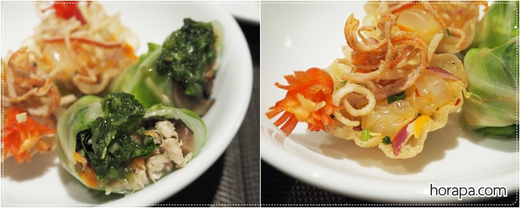 ชอบมากๆค่ะจะเรียกว่าอะไรดีล่ะ เป็นผักกาดห่อและมีซอสรสจัดๆหน่อย แซ่บดีค่ะ ส่วนในกระทงนั่นคือยำส้มโอ ก็อร่อย