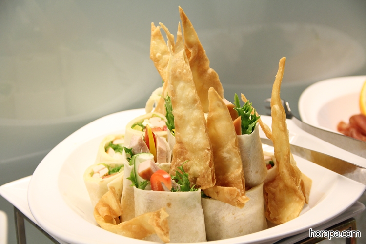 ม้าฮ่อที่มากับสับปะรด ปอเปี๊ยะผักทอด(ไม่ใส่วุ้นเส้น) และกุ้งห่มผ้า และมีขนมปังหน้าหมูด้วย