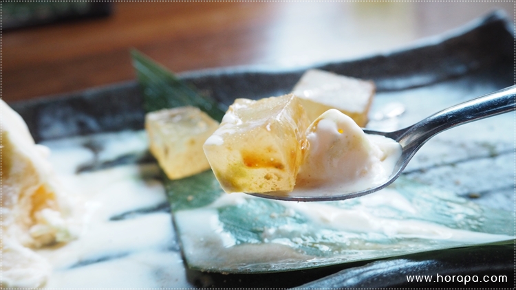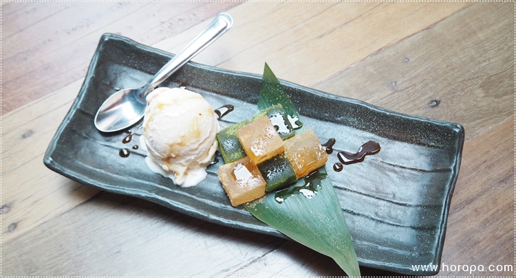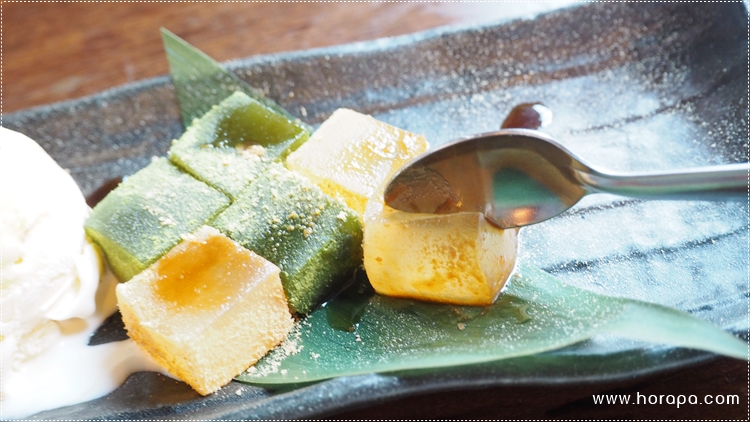 แต่จานนี้ก็ไม่ทำให้ผิดหวังนะคะ ไอศกรีมวนิลา กับวาราบิโมจิสองรส วนิลาและชาเขียวค่ะ