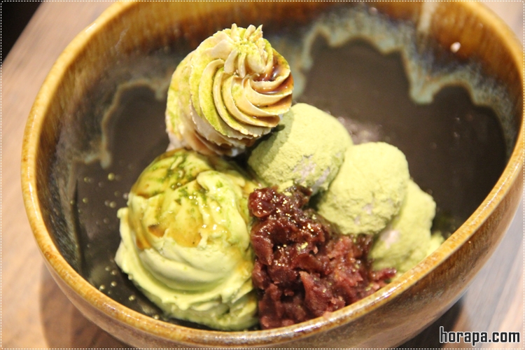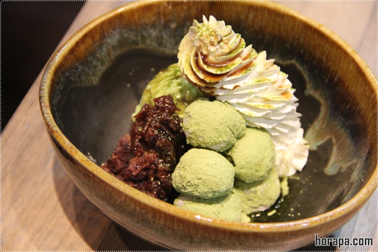 ของหวานอร่อยชื่นใจสไตล์ฮอกไกโด เข้มข้นลงตัวด้วยไอศครีมชาเขียวมัทฉะ พร้อมโมจิเหนียวนุ่มและถั่วแดงเย็น และซอฟท์ครีมที่ทางร้านตีเอง
