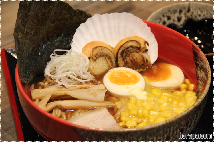 ซุปมิโสะ(ซุปเต้าเจี้ยวญี่ปุ่น) จากฮอกไกโด ใช้น้ำซุปมิโซะ เป็นซุปเต้าเจี้ยวญี่ปุ่น ทำจากถั่วเหลืองผ่านการหมักอย่างดี และเหมาะสำหรับผู้รักและห่วงใยสุขภาพ ใช้มิโสะนำเข้าจากฮอกไกโด นำมาผสมกับน้ำซุปไก่ ใส่เนย ข้าวโพด หอยเชลล์โฮตาเตะ 2ตัว หอมเขียว หน่อไม้ หมูชาชู และท้อปด้วยสาหร่าย และไข่ต้มอาจิทามะ