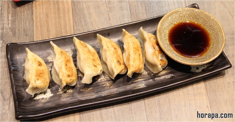 เกี๊ยวซ่าสูตรโฮมเมดของทางร้าน แป้งบางอัดไส้แน่นอร่อยเต็มคำที่มีส่วนผสมของผักกาดขาว กุ้ยช่าย ขิง โชยุ สาเก น้ำมัน  เกลือ