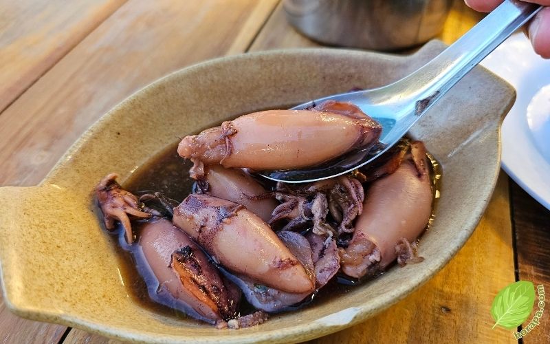 หมึกไข่ต้มหวาน จานนี้ 200 บาท คนชอบกินหมึก ก็ลองสั่งนะ อร่อยดี ก็จะหนึบๆแล้วจะหวานนิดๆ