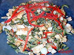 มะระขี้นกผัดไข่เค็มกระเทียมโทนดอง