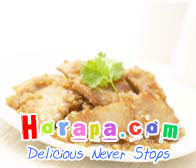 6. วิธีการจัดจานเสริฟ นำชิ้นหมูที่ทอดแล้ววางบนจาน ราดด้วยเครื่องปรุงรสข้อ 5 โรยหน้าด้วยกระเทียมเจียว และวางข้าง ๆ จานด้วยกระเทียมทอดทั้งหัว