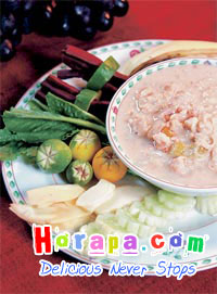 ผักสด สำหรับแกล้ม เช่น แตงกวา มะเขือ ขมิ้นขาว