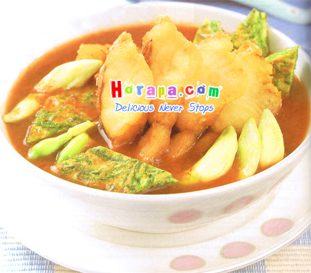 แกงส้มปลาทับทิมทอดชะอมไข่