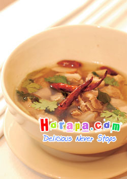 2. จากนั้นให้ใส่ใบมะกรูด ข่า ตระไคร้ ซุปไก่ก้อนคนอร์ลงไป ปรุงรสด้วยน้ำปลา น้ำมะนาว พริกป่น และพริกทอด ชิมรสตามต้องการ