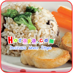 1. ตั้งกระทะไฟกลาง ใส่น้ำมันลงไปเล็กน้อย พอร้อนใส่บร็อคโคลีลงผัด เติมน้ำได้เล็กน้อย ไม่ให้ผักไหม้ พอสุกใส่เห็ดลงผัด ตามด้วยข้าว ปรุงรสด้วยน้ำตาล ซีอิ๊วขาว พริกไทยและซอสปรุงรส ถ้าอยากให้สีเข้มเหยาะซีอิ๊วดำลงไปเล็กน้อยด้วย ผัดให้เข้ากัน ตักขึ้น พักไว้