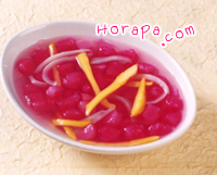 4. ผสมน้ำเชื่อมกับกะทิ เวลารับประทานให้ตักเม็ดทับทิมใส่ถ้วย ใส่น้ำแข็ง