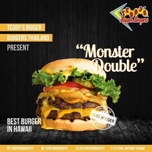 "เทดดี้ส์ บิ๊กเกอร์ เบอร์เกอร์" (Teddy?s Bigger Burgers) ร้านอาหารเบอร์เกอร์นำเข้าจากฮาวายเป็นที่ยอมรับทั่วโลกมากว่า 17 ปี และได้รับการโหวตให้เป็น "เบอร์เกอร์ที่ดีที่สุดในฮาวาย (HAWAII's BEST BURGER)" และ การันตี 4.5 จาก 5.0 ดาวบนเว็ปไซด์ TripAdvisor.com หนึ่งในเว็ปไซด์ที่โด่งดังทั่วโลกเรื่องการท่องเที่ยว ร้านอาหาร และที่พัก จัดงานแถลงข่าวและเปิดตัวร้านเบอร์เกอร์สไตล์ใหม่แห่งแรกสไตล์โมเดรินฮาวายอย่างเป็นทางการภายใต้ธีมงาน "Beef & Best Burgers by Teddy's Bigger Burger" พบกับกิจกรรมที่หลากหลายกับเบอร์เกอร์ทางเลือกสูตรลับที่ใครได้ชิมก็ถึงกับร้อง Aloha! ในความอร่อยและแตกต่าง พร้อมกระทบไหล่เหล่าดารานักแสดงและเซเลบริตี้ชื่อดัง อาทิ โบวี่ อัฐมา, พลอย จินดาโชติ, และ พอลลีน ล่ำซำ