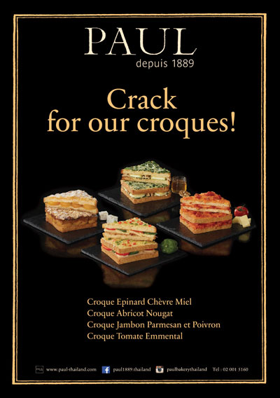 คร็อก-เมอร์ซิเออร์ (Croque-monsieur) เมนูยอดฮิตของ PAULที่เสิร์ฟให้กับลูกค้าทั่วโลกในทุกๆวัน วันนี้ PAUL จึงได้รังสรรค์รสชาติใหม่ให้คุณสัมผัสความอร่อยกับคร็อค-เมอร์ซิเออร์ (Croque-monsieur แบบคาวหวานทั้ง 4 รสชาติ CroqueEpinardCh?vreMiel (คร็อค เอเพนาร์ด เชฟ เมย) กริลล์แซนด์วิชผักขมอบชีส 390 บาท, CroqueJambonParmesan et Poivron (คร็อค จัมปง พาเมซานเอ พัววง ) กริลล์แซนด์วิชแฮมพริกหยวก 390 บาท , CroqueTomateEmmental(คร็อค ทอมัส เอ็มเม็นทอล) กริลล์แซนด์วิชมะเขือเทศ 390 บาท และ Croqueabricot nougat (คร็อค แอพริการ์ด นูการ์) กริลล์แซนด์วิชแอปปริคอด 290 บาท พร้อมเสิร์ฟความอร่อยตั้งแต่วันที่ 1 สิงหาคม - 30 กันยายน 2558 สอบถามรายละเอียดเพิ่มเติมที่เบอร์ 02-001-5160 , FB : paul1889.thailand / IG : paulbakerythailand