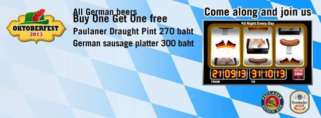 ฉลองเทศกาลเบียร์เยอรมัน หรืออ็อกโทเบอร์เฟสต์ที่ร้านเบียร์วอลท์ คลังเบียร์สุดฮิปที่ตั้งอยู่ใน โรงแรมโฟร์ พอยท์ บาย เชอราตัน กรุงเทพฯ โดยปีนี้ทางร้านให้นักดื่มเบียร์อิ่มอร่อยกับเมนูเยอรมันจากเชฟ อาทิ เซ็ทไส้กรอกเยอรมัน เสิร์ฟคู่กับซาวเคร้าท์ ในราคาเพียง 300 บาทเน็ท ซื้อ 1 แถม 1 เบียร์เยอรมันเย็นๆ ถึง 16 ชนิด และเบียร์สดจากแท็ป 2 แก้วเพียง 270 บาทเท่านั้น