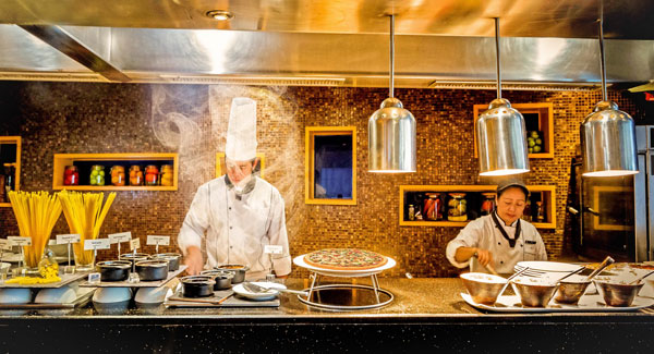 บุฟเฟ่ต์มื้อกลางวันเปิดให้บริการทุกวันจันทร์ ? เสาร์ ตั้งแต่เวลา 12:00 ? 14:30 น. ในราคาเพียง 599 บาทเน็ทต่อท่าน และซันเดย์ บรันช์ ให้บริการทุกวันอาทิตย์ตั้งแต่เวลา 12:00 ? 15:00 น. ในราคาเพียง 899 บาทเน็ทต่อท่าน เด็กอายุต่ำกว่า 12 ปี ลด 50% และเด็กอายุต่ำกว่า 6 ขวบทานฟรี