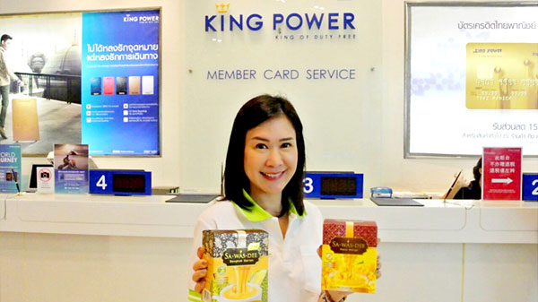 สุวีรยา อังศวานนท์ ผู้อำนวยการสายงานลูกค้าหลักและสื่อสารองค์กร และ ทิตย์ โลหะชาตะ ผู้จัดการฝ่ายขาย บริษัท ที.เอ.ซี. คอนซูเมอร์ จำกัด (มหาชน) สำรวจตลาดและตรวจบูธสินค้า เครื่องดื่มปรุงสำเร็จชนิดผงภายใต้ตรา ?สวัสดี? (Sa- Was-Dee) ประกอบด้วยเครื่องดื่มนมทุเรียนผสมเนื้อทุเรียน นมมะม่วงผสมเนื้อมะม่วง และชาไทยที่บริษัท คิง เพาเวอร์ ดิวตี้ฟรี จำกัด เพื่อจับกลุ่มนักท่องเที่ยวต่างประเทศโดยเฉพาะชาวจีน ซึ่งได้วางจำหน่ายตั้งแต่เดือนสิงหาคมที่ผ่านมา และได้รับการตอบรับจากนักท่องเที่ยวจีนเป็นอย่างดี พร้อมกันนี้เรามีแผนที่จะเพิ่มรสชาติอื่นๆเพื่อเป็นการขยายธุรกิจในอนาคตอีกด้วย
