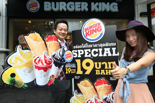 เมนูของหวานโดนใจในราคาเพียง 19 บาท ไม่ว่าจะเป็นไอศกรีมซันเดย์ ทั้ง 3 รส ได้แก่ สับปะรด, สตรอเบอร์รี่ และช็อคโกแลต หรือจะเป็นบีเคพาย ที่มีให้เลือกถึง 2 รส ทั้งพายแอปเปิ้ลและพายเชอรี่ ตั้งแต่วันนี้ - 31 ตุลาคมศกนี้ ที่ร้านเบอร์เกอร์ คิง ทุกสาขา ที่ร่วมรายการ