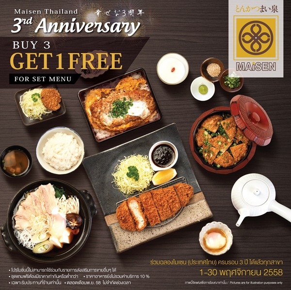 ร่วมฉลองครบรอบ 3 ปี ไมเซนประเทศไทย พบกับโปรโมชั่นพิเศษ สั่ง 3 ฟรี 1 (เซ็ทเมนู)