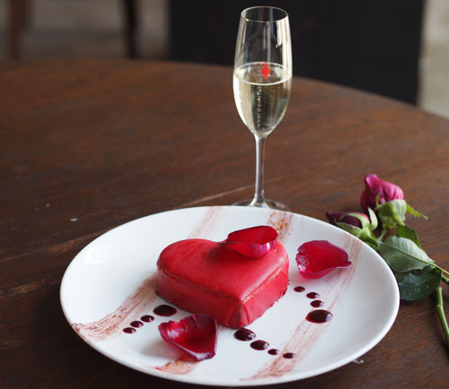 ในวันอาทิตย์ที่ 14 กุมภาพันธ์ ร่วมดื่มด่ำกับบรรยากาศแสนโรแมนติกพร้อมอาหารรสเลิศและไวน์ชั้นดี รังสรรค์โดยทีมเชฟมากความสามารถที่จะมาชนะใจคนรู้ใจของคุณ เริ่มต้นด้วยเมนูเรียกน้ำย่อยอย่าง สลัดขาปูสุดฟินเนื้อปูเน้นๆ (saut?ed king crab leg salad) หอยเชลล์คำโตเสิร์ฟพร้อมเห็ดทรัฟเฟิลฝรั่งเศส (pan-seared scallop served with French truffle) มาถึงไฮไลท์เมนูหลัก อาทิ เทอร์มิดอร์ล็อบสเตอร์สุดคลาสสิคเสิร์ฟคู่ผักสดใหม่ (classic lobster Thermidor with baby vegetables) ขาแกะเนื้อนุ่มทานคู่กับพาสต้ายัดไส้ซูคินี และเนื้อรอสซินีทานเข้ากันดีกับมันฝรั่งและผักโขม สุดท้ายพลาดไม่ได้กับของหวานอย่าง เค้กหัวใจพองโตเคลือบช็อคโกแล็ตราดด้วยซอสราสเบอร์รี่ (chocolate and raspberry for lovers) ราคาเริ่มต้นที่จานละ 420++ บาท