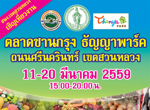 เชิญเที่ยวงาน "ตลาดชานกรุง ธัญญาพาร์ค ถนนศรีนครินทร์ เขตสวนหลวง"