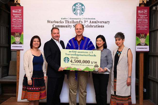 ในโอกาสนี้สตาร์บัคส์ได้บริจาคเงินจำนวน 4.5 ล้านบาทซึ่งเป็นรายได้จากทุก ๆ 10 บาทในการจำหน่ายเครื่องดื่มสตาร์บัคส์ทุกแก้วในร้านกาแฟสตาร์บัคส์สาขาหลังสวนตลอด 3 ปี ที่ผ่านมา รวมกับรายได้ 5 เปอร์เซ็นต์จากการจำหน่ายกาแฟม่วนใจ๋ทั่วประเทศให้แก่ ITDP โดยมีนาย ไมค์ แมนน์ ผู้อำนวยการโครงการพัฒนาชาวเขาแบบผสมผสาน (Integrated Tribal Development Program: ITDP) เป็นผู้รับมอบ