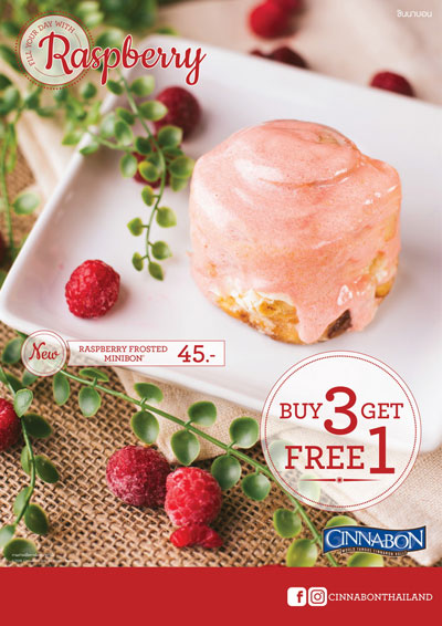 มาพบกับความสุขแสนอร่อยกับ ซินนาบอน ราสเบอร์รี่ ฟรอสเท็ด ได้แล้วตั้งแต่วันที่ 15 มิถุนายน ? 14 สิงหาคม 2559 ที่ร้านซินนาบอน ทั้ง 5 สาขาใกล้บ้านคุณ (สยามพารากอน, เดอะมอลล์บางกะปิ, แฟชั่นไอส์แลนด์, เซ็นทรัลพลาซา เวสต์เกต และสีลม คอมเพล็กซ์)