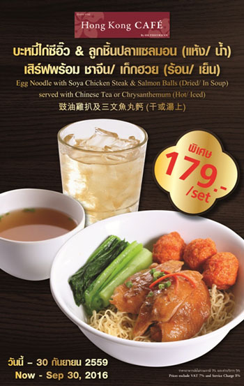 ฮ่องกง คาเฟ่ นำเสนอชุดเมนูสุดคุ้ม บะหมี่ไก่ซีอิ๊วกับลูกชิ้นปลาแซลมอน เพียง 179 บาท