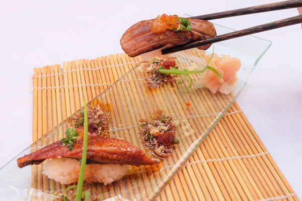เดอะรูฟ แกสโตร ชั้น 25 สยาม แอ็ท สยาม ดีไซน์ โฮเต็ล กรุงเทพ เสิร์ฟเมนูซูชิรสเลิศ ด้วยวัตถุดิบชั้นดีของฟัวกราและปลาไหลญี่ปุ่น ที่พ่อครัวบรรจงปั้นอย่างใส่ใจทั้งความสดและรสชาติของ?ซูชิอูนางิ นิงิริ? และ ?ซูชิอูนางิ ฟัวกรา นิงิริ? ในราคาพิเศษเพียงเสิร์ฟละ 280 บาท++ หรือสั่งทั้ง 2 เมนูพร้อมกันราคาเพียง 480 บาท++ แถม Gekkekan Nama Sake (30cl) โปรโมชั่นส่งท้ายถึงสิ้นเดือนกันยายนนี้เท่านั้น สอบถามเพิ่มเติมโทร. 0 2217 3000 หรืออีเมล fbrsvn@siamatsiam.com