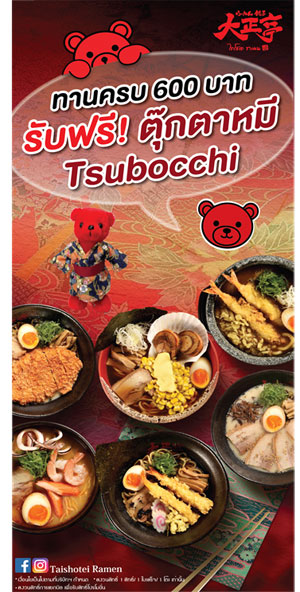 ไทโช-เต ราเมน ชวนอิ่มอร่อยครบ 600 บาท รับฟรีตุ๊กตาหมี Tsubocchi