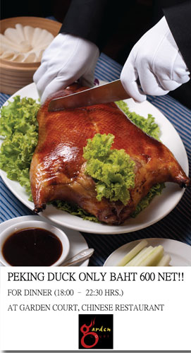 โปรโมชั่นส่งท้ายปี "เป็ดปักกิ่ง" ณ ห้องอาหารจีน การ์เด้น คอร์ท