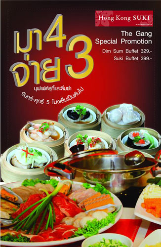 ฮ่องกง สุกี้ ที่โครงการสุโขทัยเอฟ99 เมืองทองธานี ขอชวนทุกท่านมาอร่อยเป็นกลุ่มสุดคุ้ม มา4จ่าย3 ต้อนรับเทศกาลปีใหม่และทุกมื้อพิเศษ