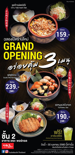 สึโบฮาจิ เอ็กซ์เพรส ฉลองเปิดร้านใหม่ อร่อยคุ้ม 3 ชุดเมนู