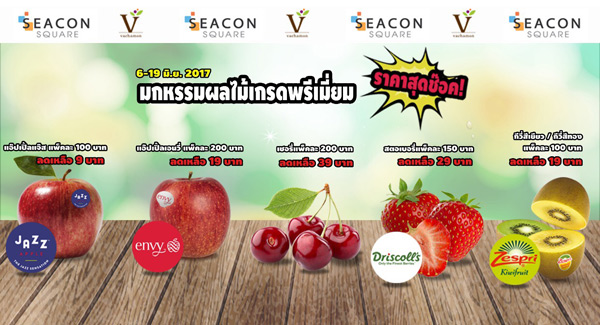 "มหกรรมผลไม้เกรดพรีเมี่ยมราคาสุดช็อค!" นำผลไม้นอกเกรดพรีเมี่ยมส่งตรงจากต่างแดน มาจำหนายในราคาสุดเซอร์ไพรส์แบบที่ไม่เคยมีมาก่อน เพื่อเป็นการคืนกำไรให้ผู้บริโภค และเปิดโอกาสให้ผู้บริโภคได้ลองชิมผลไม้นอกเกรดพรีเมี่ยม ในราคาสบายกระเป๋า ต้อนรับฤดูกาลผลไม้นำเข้าที่กำลังคึกคักในช่วงครึ่งปีหลัง โดยนำผลไม้หลากหลายแบรนด์ดังร่วมลดราคาอาทิเช่น แอปเปิ้ลเอนวี่ จาก 200 บาท เหลือแพ็คละ 19 บาท, เชอรี่จาก 200 บาท เหลือแพ็คละ 39 บาท, สตอเบอรี่ Driscoll?s จาก 150 บาท เหลือแพ็คละ29 บาท, แอปเปิ้ลแจ๊ส จาก 100 บาท เหลือแพ็คละ 9 บาท และกีวี่เซสปรี จาก 100 บาท เหลือแพ็คละ 19 บาท **เฉพาะช่วงนาทีทองเวลา 17.00 ? 18.00 น. ของวันที่ 6 - 11มิถุนายน 2560 เท่านั้น** รีบมาช็อปมาชิมกันก่อนจะพลาดโอกาสคุ้มสุดคุ้มแบบนี้ โดยงาน "มหกรรมผลไม้เกรดพรีเมี่ยมราคาสุดช็อค!" จัดขึ้นระหว่างวันที่ 6 ? 19มิถุนายน 2560 เวลา 11.00 ? 19.30 น. ณ ลานกิจกรรม ชั้น G บริเวณหน้าศูนย์เอไอเอสฝั่งโรบินสัน ซีคอนสแควร์ ศรีนครินทร์