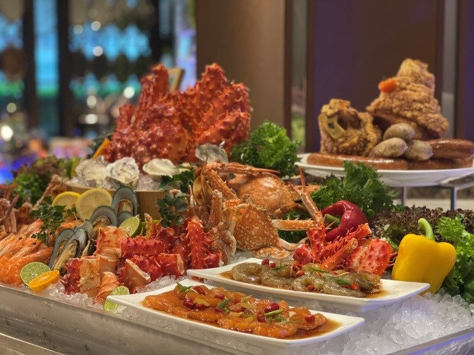พบกับบุฟเฟต์ซีฟู้ดไม่อั้น อาทิ กุ้งแม่น้ำเผา, สเต็กเนื้อริบอายซอส คาเฟ่ เดอ ปารีส, ซี่โครงหมูบาร์บีคิวอบชีส, ก๋วยเตี๋ยวเนื้อวากิว, ซุปเห็ดทรัฟเฟิล และอื่น ๆ อีกมากมาย ราคา 1,599 บาทสุทธิต่อท่าน รวมเครื่องดื่ม ซอฟต์ดริ้งค์ ชา และ กาแฟ