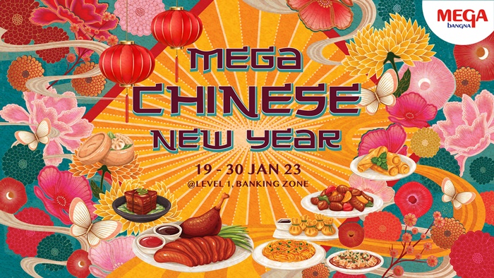 2. เทศกาลอาหาร "Mega Chinese New Year" ระหว่างวันที่ 19 ? 30 มกราคม 2566 ณ บริเวณโซนธนาคาร ชั้น 1 ศูนย์การค้าเมกาบางนา อิ่มอร่อยไปกับเมนูอร่อยที่พาเหรดมาให้เลือกชิมมากมายกว่า 200 เมนูจากร้านเด็ดร้านดัง อาทิ ร้านเจ๊แดง สามย่าน การันตีความอร่อยจากมิชลินสตาร์, ไก่ย่างจีระพันธ์ หอม อร่อย นุ่ม, ขนมไทยโบราณสูตรหายากจากร้านยายทำให้หลานขาย, ร้านขนมเปี๊ยะนมสดไข่ทะลักอร่อยซอย 8, ร้านกิมไช้ กระหรี่ปั๊บ ที่ส่งต่อสูตรความอร่อยจากรุ่นสู่รุ่นมากกว่า 25 ปี และร้าน อลิชาขนมเปี๊ยะ แป้งบางนุ่ม ไส้แน่น เป็นต้น